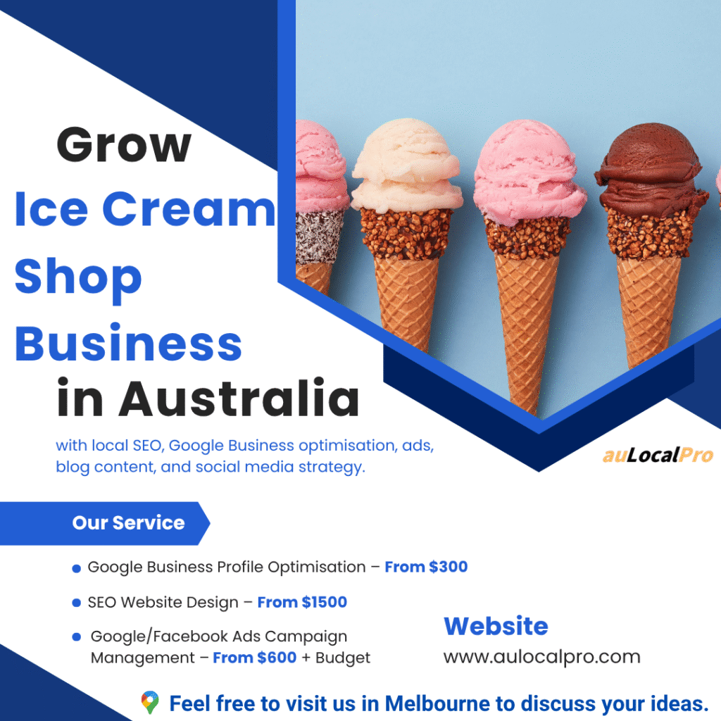 Boost your ice cream shop in Saint Albans, Victoria with expert SEO, social media content, Google Ads, and website design tailored for local dessert lovers.