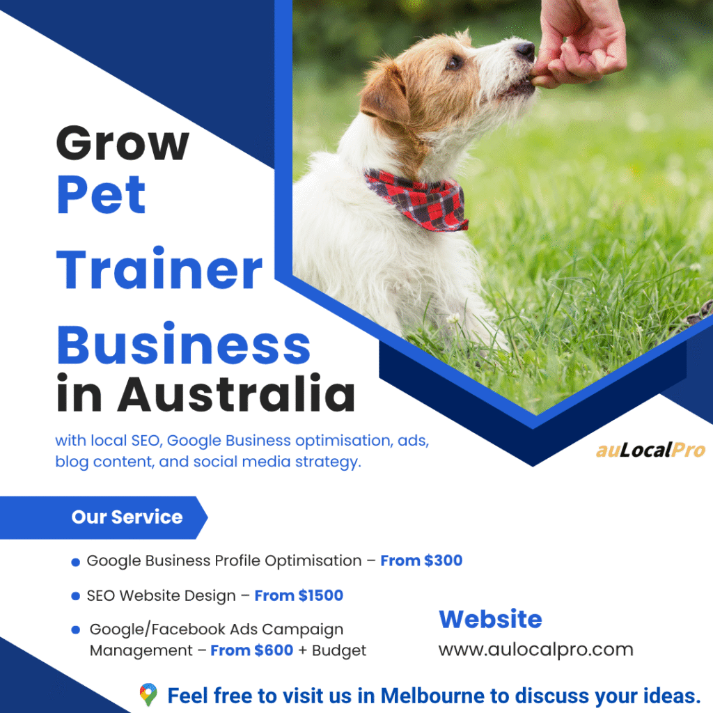 Grow your pet training business in Preston, Victoria with local SEO, social media content, ad campaigns, and branding design.